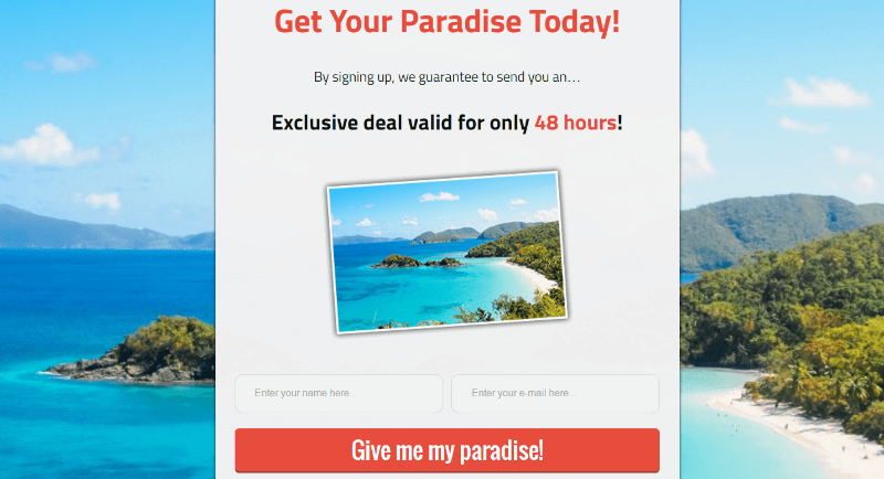 Whereas a landing page is just any page designed to push readers towards a specific action, squeeze pages are only focused on one type of action: