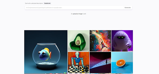 To create your own image, just type in a text description of what you want. If you are out of ideas, then simply click the ‘Surprise Me’ button to see examples of some of the prompts you can use to generate an image.